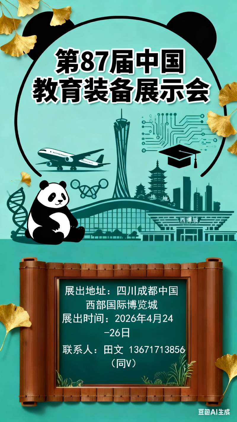 由中国教育装备行业协会主办的“第87届中国教育装备展示会”,将于2026年4月24日-26日在四川成都中国西部国际博览城隆重举行。在此,我们向全国各地教育界的同仁、教育装备生产经营企业的朋友们,以及所有关心教育事业的各界人士,发出最诚挚的邀请!