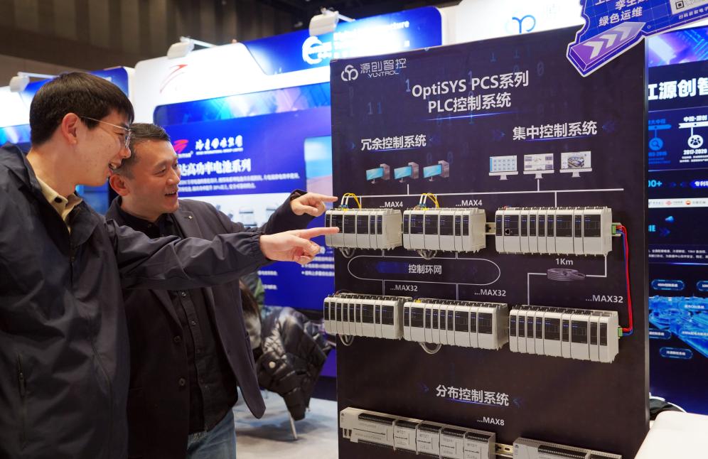 12月11日, 工作人员在展台上介绍展示的控制系统展品。