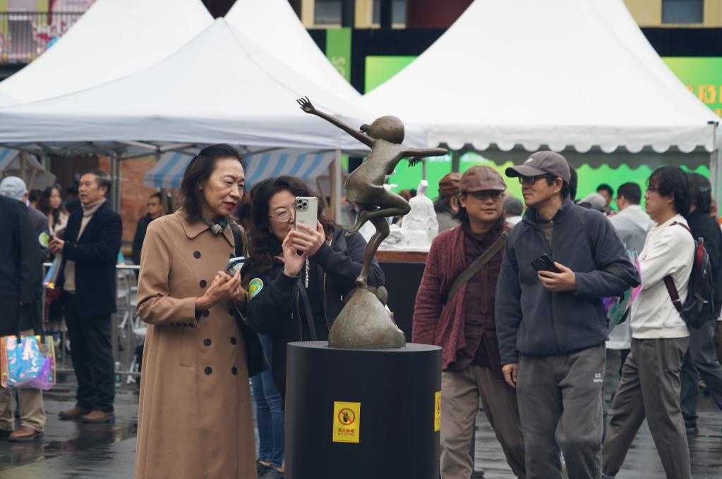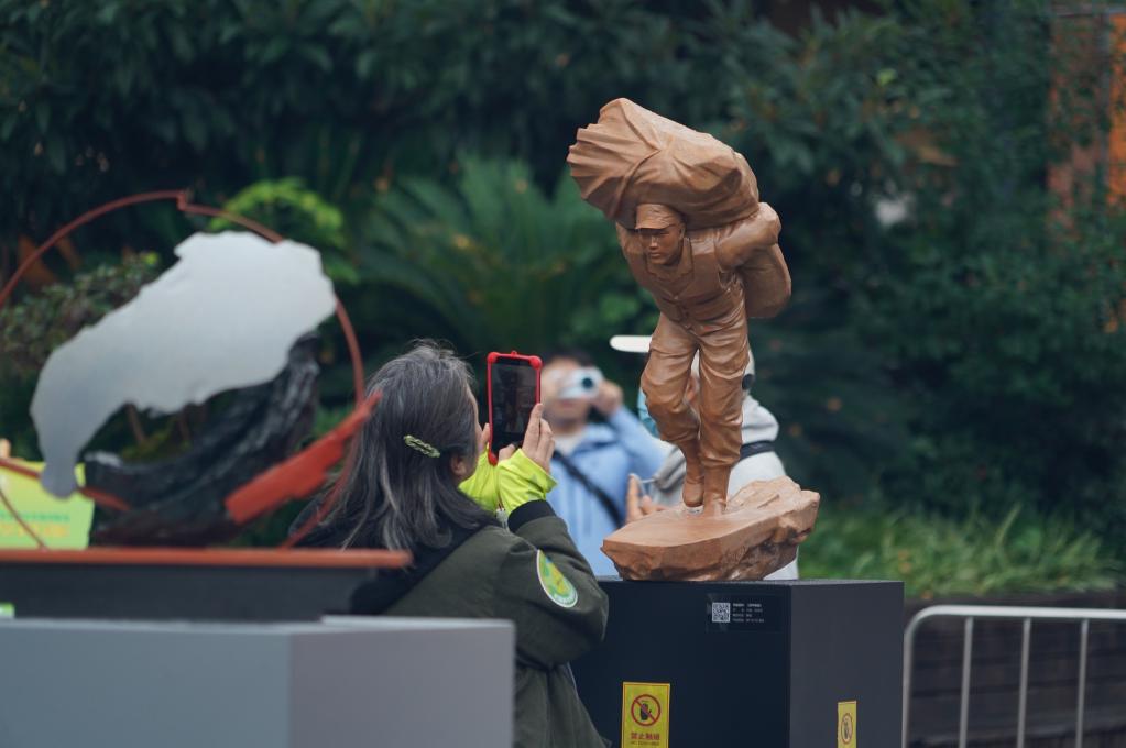 10月24日,观众在2025全国青年雕塑艺术作品展现场拍摄雕塑作品。
